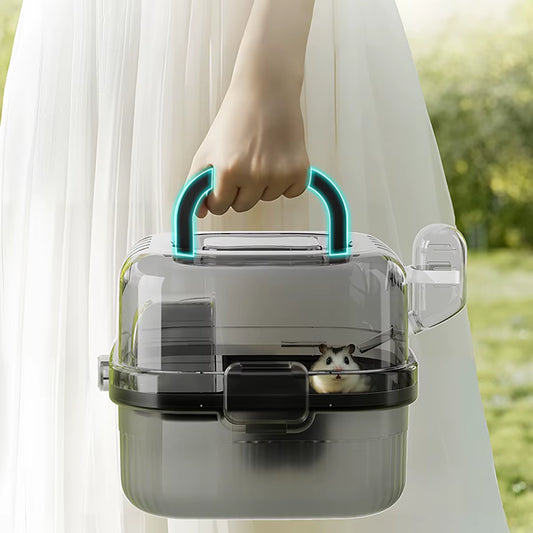 Hamster Outdoor Carrier Cage Portable Hamster Cage with Clear Large Flip Cover for Hamster Bird Carrying Pet Supplies