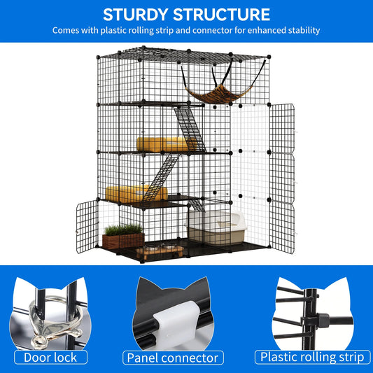 Large Cat Cage 4-Tier Kennels with Large Hammock ,Metal Wire Cat Kennel DIY Cat Playpen Perfect for 1-3 Cats