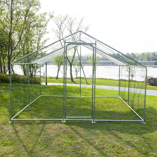 Large Chicken Coop Run Walk-In Metal Poultry Cage Outdoor Backyard Hen House